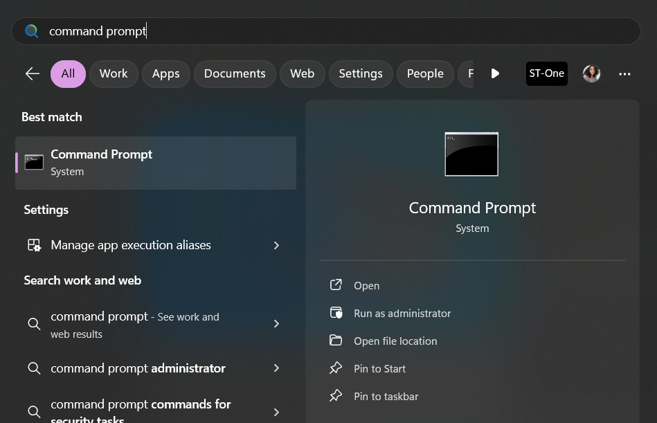 To run the test, you will first need to open the Command Prompt on your computer. The Command Prompt can be accessed through the search bar of your operating system: