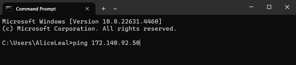 Through the Command Prompt, run the ping command followed by the IP address of the ST-One Hardware®, as shown in the image below: