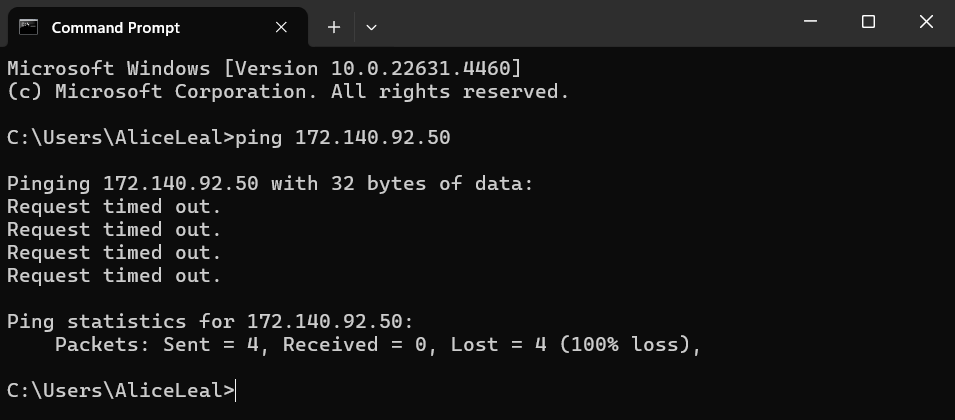 If the ping test does not respond, as shown in the image below, contact the ST-One Support team.
