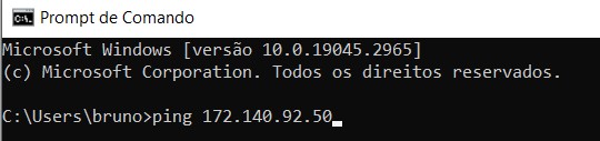 Através dele, execute o comando ping seguido do IP do ST-One Hardware®, conforme a imagem abaixo: