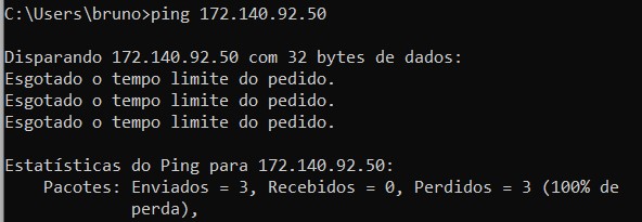Caso o teste de ping não dê resposta, como na imagem abaixo, entre em contato com a equipe de Suporte ST-One.